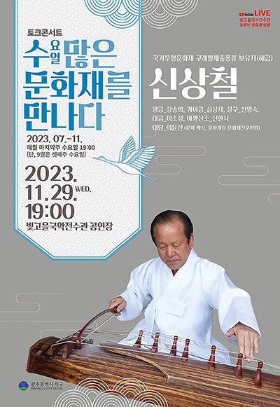 광주시 서구는 올해의 마지막 토크콘서트‘수(요일) 많은 문화재를 만나다’를 오는 29일 오후 7시 빛고을국악전수관 공연장에서 진행한다.