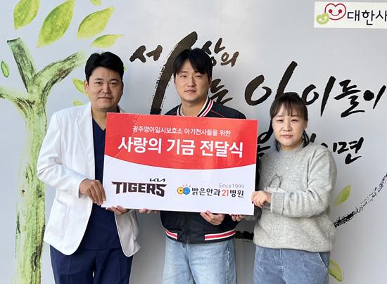 KIA는 \"이날 전달된 기금은 2023시즌 동안 KIA 최지민, 윤영철, 최형우, 전상현, 나성범, 김선빈 등이 수상한 밝은안과21병원 월간 최우수선수(MVP) 상금 중 일부를 적립한 것\"이라고 전했다.