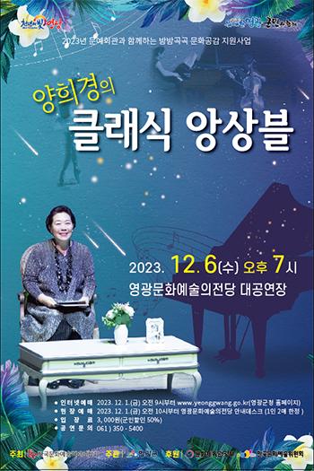 영광군은 오는 6일 오후 7시 영광문화예술의전당 대공연장에서 ‘양희경의 달콤한 클래식’을 공연한다.