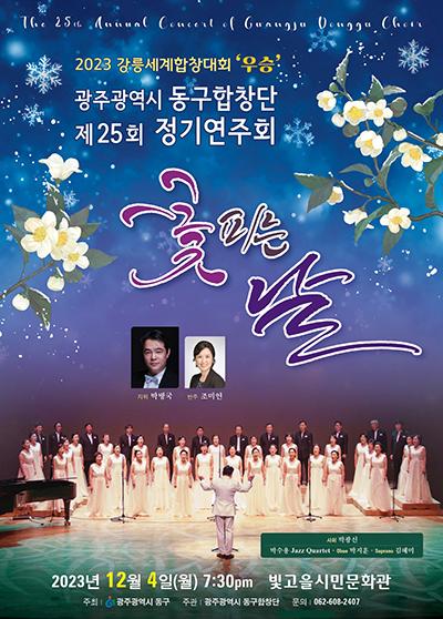 광주 동구는 연말연시를 앞둔 12월 4일 빛고을시민문화관 대공연장에서 동구합창단의 제25회 정기연주회 ‘꽃 피는 날’을 개최한다고 밝혔다.