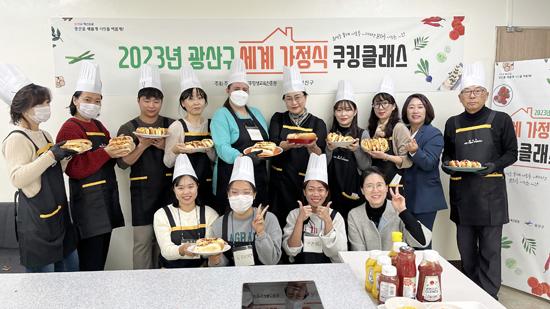광주 광산구(구청장 박병규)가 교육 사각지대 지원사업 ‘세계 가정식 요리강사 양성 과정’을 수료한 이주여성들이 본격적인 세계 가정식 요리 강사로 활동할 수 있도록 지원한다.
