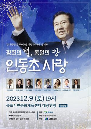 목포시는 오는 9일 오후 7시 목포시민문화체육센터 대공연장에서 시민들의 문화예술 향유권 신장을 위해 드라마콘서트 \'평화의 별, 통일의 강 – 인동초 사랑\'공연을 개최한다.