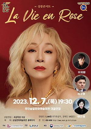 무안군은 ‘2023년 문화공감방방곡곡 공모사업’에 선정된 ‘살롱콘서트 <라비앙로즈>’ 공연을 7일 저녁 7시 30분 승달문화예술회관 대공연장에서 개최한다.
