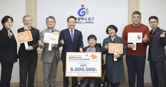 임택 동구청장은 “발달 장애를 가진 아이들이 따뜻한 세상을 느낄 수 있도록 고향사랑기부제에 동참해주신 오영진 대표님께 깊이 감사드린다”면서 “소중한 기부금으로 장애인과 비장애인 구분 없이 모두가 한 사회의 구성원으로 더불어 살아가는 사회 구현을 위해 최선을 다하겠다”고 말했다.