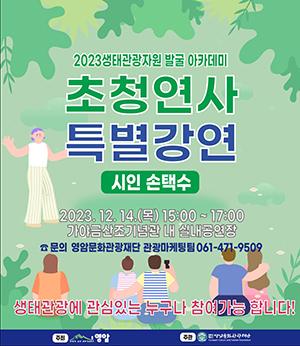 영암군과 영암문화관광재단은 \'손택수\' 시인을 초청하여 14일 오후 3시 월출산기찬랜드 내 가야금산조기념관에서 \"기후변화시대의 시와 자연과 인간\"이라는 주제로 특별강연을 개최한다.