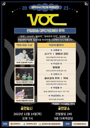 광주 동구는 오는 14일 전일빌딩 245에서 동구문화관광재단이 주최하고 전일생활문화센터에서 주관하는 ‘2023 광주245가요제, 전일방송 대학가요제의 추억’을 개최한다고 밝혔다.