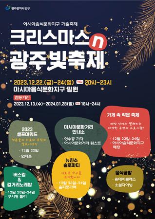 광주 동구는 내년 1월 28일까지 아시아음식문화지구 일원이 중심이 되는 ‘아시아음식문화지구 크리스마스ⓝ광주빛축제’를 개최한다고 밝혔다.