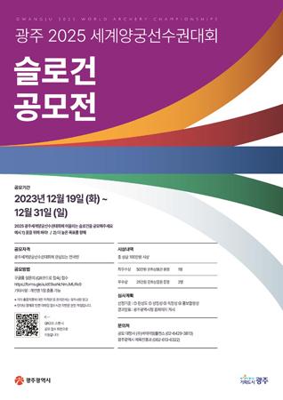 광주시는 2025년 9월 5일부터 12일까지 8일간 광주국제양궁장에서 열리는 2025 세계양궁선수권대회 슬로건을 공모한다고 18일 밝혔다.
