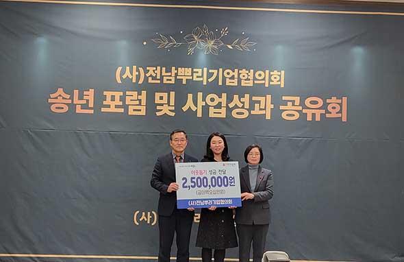 (사)전남뿌리기업협의회는 송년 포럼 및 사업성과 공유회를 개최하며 성금을 전달했고, 성금은 전남사회복지공동모금회를 통해 지역 내 어려운 이웃에게 지원될 예정이다.