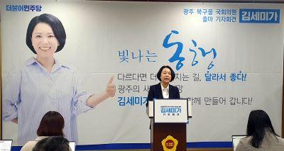 김세미가 ㈔디지털시대공감 이사장이 21일 \"국민과 소통, 공감, 동행, 행동하며 시민의 삶을 함께 바꾸는 정치인이 되겠다\"며 내년 총선 광주 북구을 출마를 공식 선언했다.