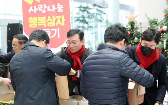 전남도와 전남도청공무원노동조합은 연말을 맞아 26일 도청 윤선도홀에서 사랑나눔 행복상자 만들기 행사를 개최했다.