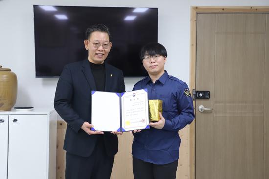 광주전남지방병무청은 27일 순천시 순천조례노인복지센터를 방문해 모범 사회복무요원으로 선발된 김성준씨에게 표창장을 수여하고 함께 복무하는 사회복무요원들에게 병역의무 이행 응원메시지를 전달했다.