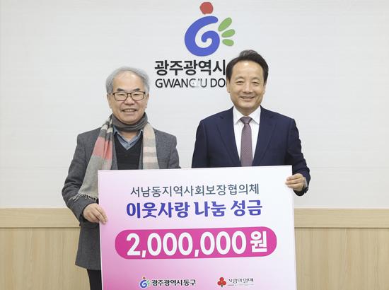 광주 동구 서남동은 지난 22일 지역사회보장협의체 최윤호 위원장이 관내 어려운 이웃을 위해 성금 200만 원을 기탁했다고 밝혔다.