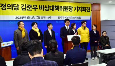 김 위원장은 이날 오전 광주시의회에서 기자회견을 갖고 \"호남은 그 동안 민주당의 공천을 받은 정치인과 민주당의 공천을 받지 못한 민주당 출신 정치인들이 번갈아가며 선택을 받아왔고, 선거가 끝나면 다시 하나의 민주당으로 합치기를 반복해 왔다\"며 민주당 일당독점 체제를 비판했다.