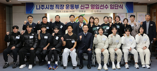 나주시는 최근 시청사 이화실에서 2024년 나주시청 직장운동부 사이클, 육상팀의 신규 및 재계약 선수 입단식을 가졌다고 11일 밝혔다.