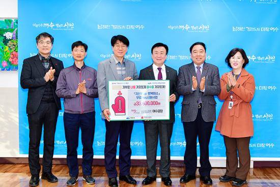 지난 12일 여수시에 따르면 금호석유화학 여수공장 임직원들이 급여의 일정 금액을 십시일반 모은 돈과 회사 지원금 1대 1 매칭 사업비를 통해 후원금을 마련했다.
