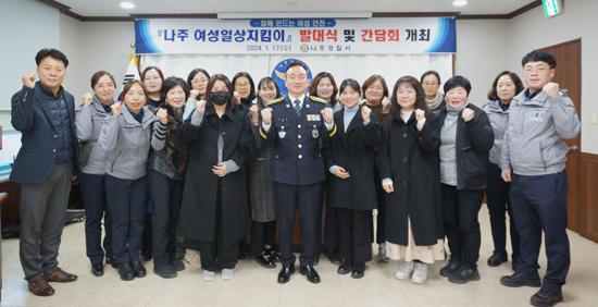 나주경찰서는 전날 청사에서 장진영 서장이 참석한 가운데 \'나주 여성일상지킴이\' 발대식을 개최하고 지킴이로 선정된 회원 14명에게 위촉장을 수여했다고 18일 밝혔다,