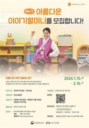 지원서 접수 등 자세한 내용은 문체부, 한국국학진흥원, 이야기할머니 누리집(www.storymama.kr) 또는 이야기할머니사업단(080-751-0700)을 통해 확인할 수 있다.