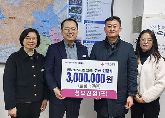 순천시는 최근 성우산업(주)에서 이웃돕기 성금 300만원을 기탁했다고 25일 밝혔다.