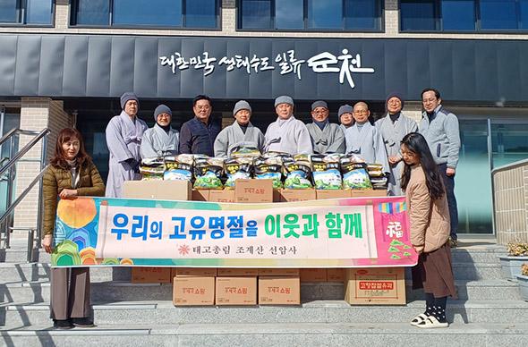 순천시 승주읍행정복지센터는 지난 24일 승주읍 소재 선암사로부터 취약계층 지원을 위한 설 명절맞이 후원품을 전달받았다고 밝혔다.