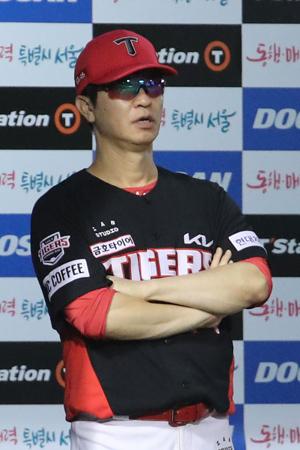 6일 서울 송파구 잠실야구장에서 열린 2023 프로야구 KIA 타이거즈 대 두산베어스의 경기, 3회 초 KIA 김종국 감독이 경기를 지켜보고 있다. 2023.09.06.