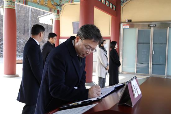 하성일 제42대 광주지방보훈청장이 취임 첫날인 29일 광주 북구 운정동 국립5·18민주묘지를 찾아 방명록을 작성하고 있다. /광주지방보훈청 제공