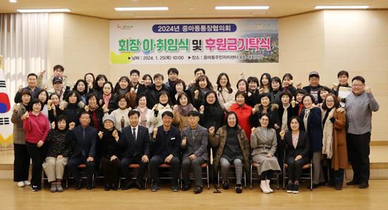 광양시 중마동은 주민자치센터에서 시·도의원, 기관단체장, 사회단체장, 65개 통장 등 100여 명이 참석한 가운데 중마동 통장협의회 회장 이·취임식 및 후원금 기탁식을 가졌다고 29일 밝혔다.
