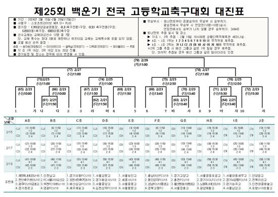 주요 일정은 오는 2월 15일 오전 9시 40분 광양공설운동장에서 개회식과 시축 행사 후 오전 10시부터 서울대동세무고와 경기뉴양동 FC U18 개막전으로 시작해 29일 오전 11시 광양공설운동장에서 결승전으로 대장정을 마무리한다.