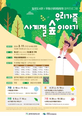 광주시 북구가 2월부터 11월까지 무등산생태탐방원에서 자연과 함께 즐기는 독서 체험 프로그램 ‘우리 가족 사계절 숲 이야기’를 운영한다고 31일 밝혔다.