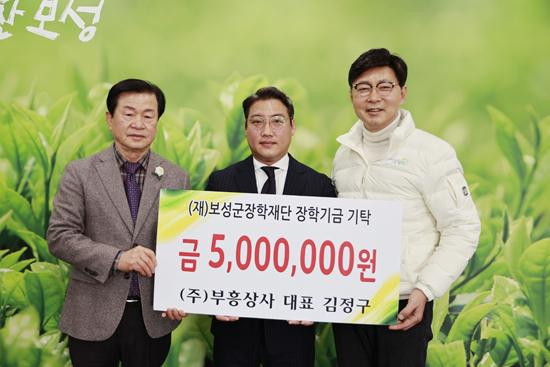 보성군은 지난 30일 보성군 부흥상사가 보성군청 군수실에서 보성군장학재단에 장학금 500만 원을 전달했다고 밝혔다. 조성면에 소재한 부흥상사는 1970년대부터 현재까지 40여 년간 한자리에서 꾸준하게 시멘트, 철근 도매업 등을 주요 사업을 운영하는 기업이다.