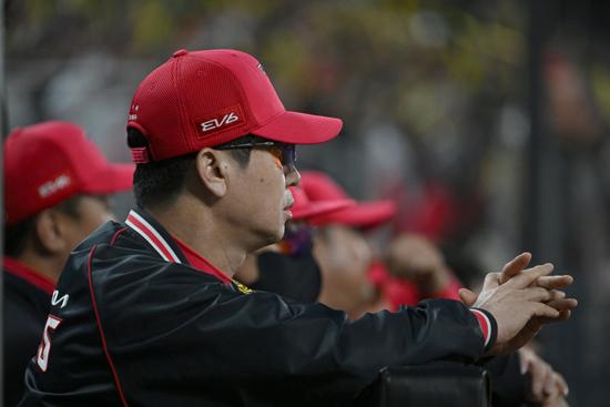 지난해 10월 10일 오후 광주 북구 광주-기아챔피언스필드에서 열린 2023프로야구 KIA 타이거즈 대 SSG 랜더스의 경기, 1회 말 KIA 김종국 감독이 경기를 보고 있다. 2023.10.10.