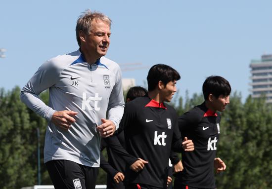 아시아축구연맹(AFC) 2023 카타르 아시안컵 4강 진출에 성공한 대한민국 축구 국가대표팀 선수들과 위르겐 클린스만 감독이 3일(현지시간) 카타르 도하 알 에글라 트레이닝 센터에서 회복 훈련을 하고 있다. 2024.02.03