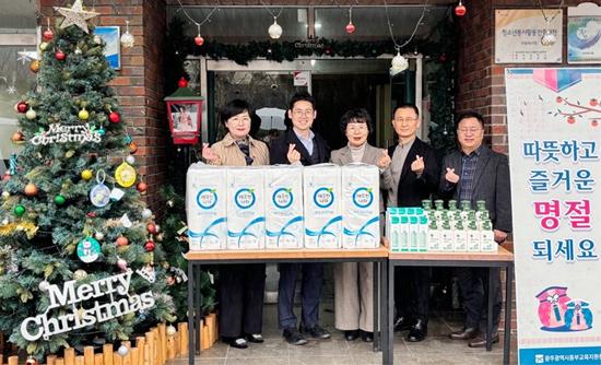 광주동부교육지원청이 5일 설 명절을 앞두고 지역 내 사회복지시설 3곳을 방문해 시설 운영에 필요한 생활용품을 전하고 따뜻한 정을 나눴다.