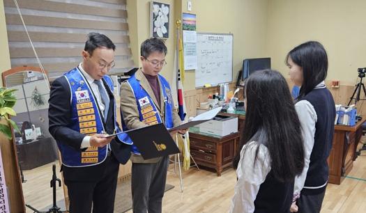 광주수피아여중이 지난 5일 광주고려라이온스클럽 후원 장학생 2명을 선발하여 각각 장학금 40만원을 전달했다.