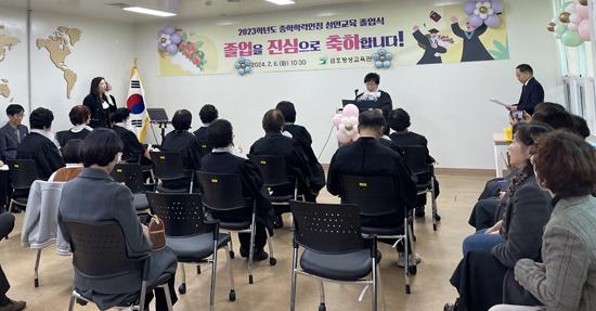 금호평생교육관이 지난 6일 ‘2023학년도 중학학력인정 성인교육 졸업식’을 개최했다. /광주시교육청 제공