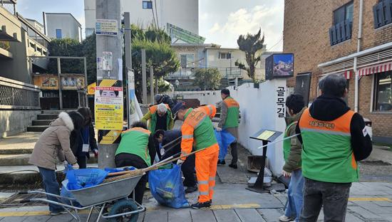 이날 모인 봉사자들은 ▲겨울철 관내 청소 취약지 ▲공용주차장 시설 주변 ▲상가 등 다중 집합 장소 ▲쓰레기 상습 불법 투기 지역 등을 청소하며 쾌적한 거리 조성을 위해 힘을 모았다.