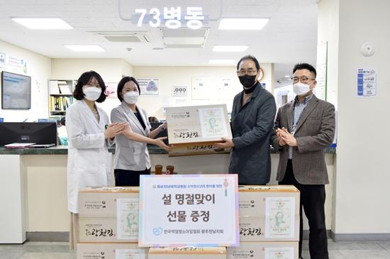 화순전남대병원은 이날 병원 내 73병동에서 사단법인 한국백혈병소아암협회 광주전남지회와 함께 설 명절 선물 전달식을 진행했다. 선물은 한국백혈병소아암협회가 지역사회의 온정을 전하고자 마련한 김 세트 15개다.