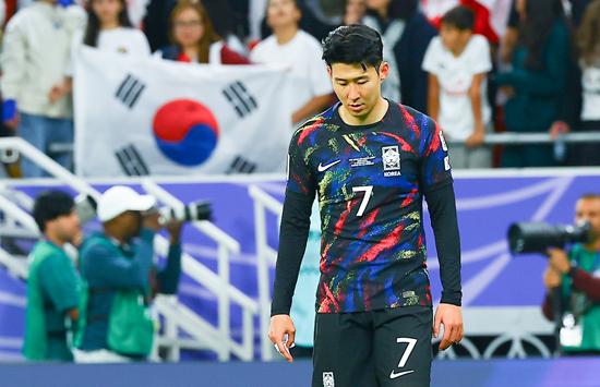 6일(현지시간) 카타르 알라이얀 아흐메드 빈 알리 스타디움에서 열린 2023 아시아축구연맹(AFC) 카타르 아시안컵 4강전 요르단 대 대한민국의 경기가 요르단의 2:0으로 승리로 대한민국의 결승 진출이 좌절됐다. 대한민국 축구 대표팀 손흥민이 고개를 숙인 채 경기장을 돌고 있다. 2024.02.07.