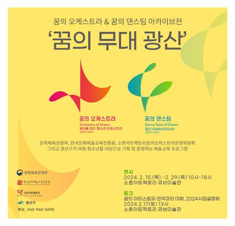 광주 광산구는 15일부터 소촌아트팩토리 큐브미술관에서 2024 꿈의 오케스트라X꿈의 댄스팀 아카이브전(展) <2024 꿈의 무대 ‘광산’> 전시를 개최한다고 밝혔다.