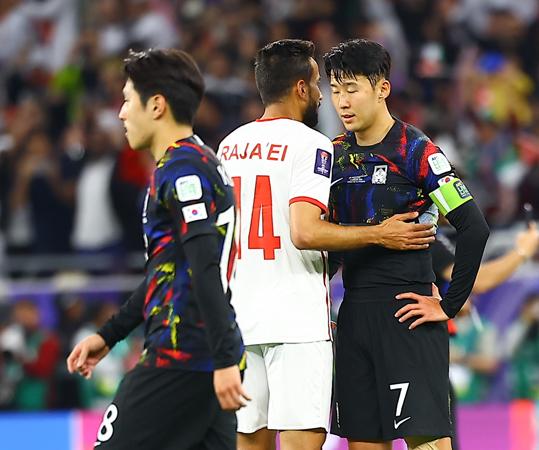 6일(현지시간) 카타르 알라이얀 아흐메드 빈 알리 스타디움에서 열린 2023 아시아축구연맹(AFC) 카타르 아시안컵 4강전 요르단 대 대한민국의 경기가 요르단의 2:0으로 승리로 대한민국의 결승 진출이 좌절됐다. 대한민국 축구 대표팀 손흥민, 이강인이 아쉬워하고 있다. 2024.02.07