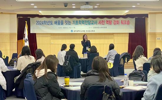 광주시교육청은 지난 15~16일 초등 기초학력전담교사들과 함께 ‘2024 배움을 잇는 기초학력전담교사 사전 역량 강화 워크숍’을 개최했다.