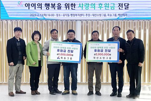 유덕동은 ▲대선소방그룹 ▲목송그룹 ▲백년미가 총 3개의 관내 업체로부터 아이의 행복을 위한 사랑의 후원금 350만원을 전달받았다.