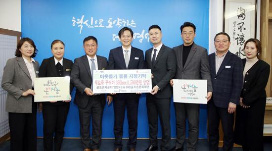 골프존카운티 영암45&(재)골프존문화재단이, 지난 15일 1500만원 상당 온기 나눔 식료품 꾸러미 350박스를 어려운 이웃을 위해 나눠달라며 영암군에 기부했다.