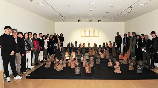 김희상 작가는 유약을 바르지 않은 토우 인물상으로 유명하다. 전시장 안으로 옮겨진 인간 군상의 다양한 희로애락은 작가의 땀과 열정으로 빚어낸 세계이다.