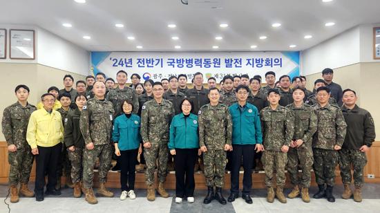 광주전남지방병무청(청장 홍승미)은 20일 청내 대회의실에서 제31보병사단장을 비롯해 육·해·공군 동원관계관 50여 명이 참석한 가운데 관·군 합동 2024년 전반기 국방 병력동원 발전 지방 회의를 개최했다.