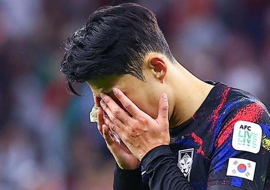 주장으로 팀워크를 잡지 못한 손흥민은 요르단전 0-2 완패 후 눈시울을 붉히며 고개를 숙였다.