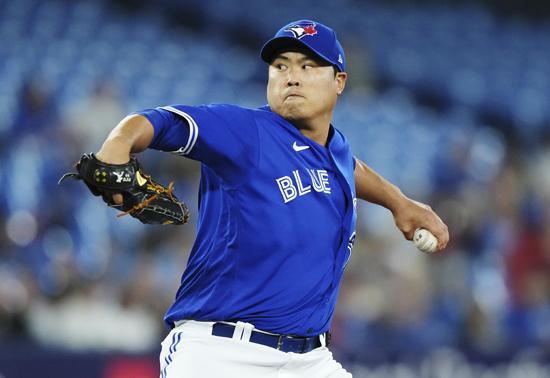 토론토 블루제이스의 류현진이 12일(현지시각) 캐나다 토론토의 로저스 센터에서 열린 2023 메이저리그 텍사스 레인저스와의 경기 1회 초 투구하고 있다. 2023.09.13.