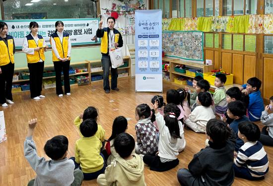 이날은 광산구보건소 ‘2024년 찾아가는 감염병 예방 교육’을 연계해 비아동에 있는 어린이집, 지역아동센터, 경로당을 대상으로 감염병 예방 수칙 홍보, 체험형 손 씻기 교육 등을 진행했다.
