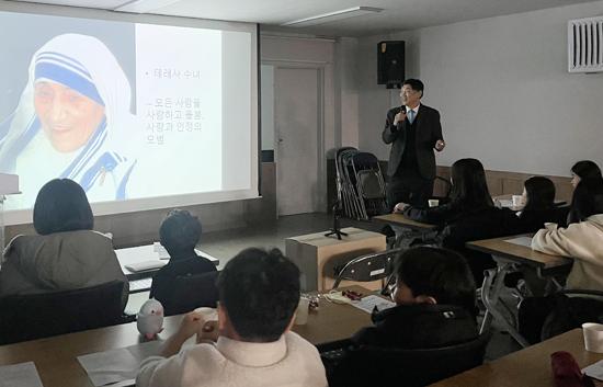 첫 번째 강의는 명장 광주 37호 및 전국 1102호 아너소사이어티인 광주 상무수치과병원 김수관 대표원장이‘나눔은 실천이고 아이는 미래다’라는 주제로 기부 및 봉사활동과 아너소사이어티에 대해 설명했다.