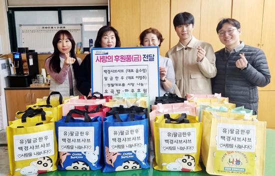 지난 23일 (유)팔금한우와 백경샤브샤브에서 정월대보름을 맞아 저소득 어르신들을 위해 준비한 오곡밥과 한우불고기, 나물반찬으로 구성된 선물 20세트를 만호동행정복지센터에 기탁했다.